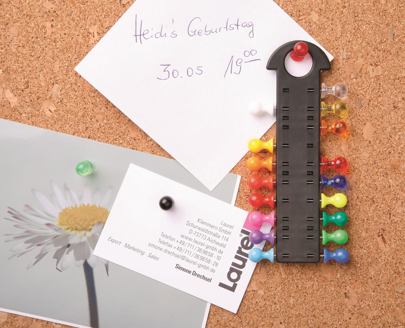 Dank seines ergonomisch geformten Kopfes liegt der Power Griff Magnet mit Schlitz bestens in der Hand. Er ist perfekt geeignet um Karten, Hinweise oder Aushänge an Aktenschränke, Magnetwände oder den Kühlschrank zu befestigen. Der Laurel Power Zylinder Magnet ist mit seiner kleinen Kette perfekt geeignet Stifte, Scheren oder Schlüssel an metallischen Oberflächen zu befestigen.