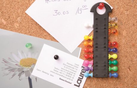 Eine massive Kunststoffkappe umschließt den Reißnagel. Sie lässt sich garantiert nicht durchdrücken, denn die Superreißnägel sind eingegossen. Ein hervorragendes Planungs- und Terminsystem: Wandkalender und Superreißnägel.