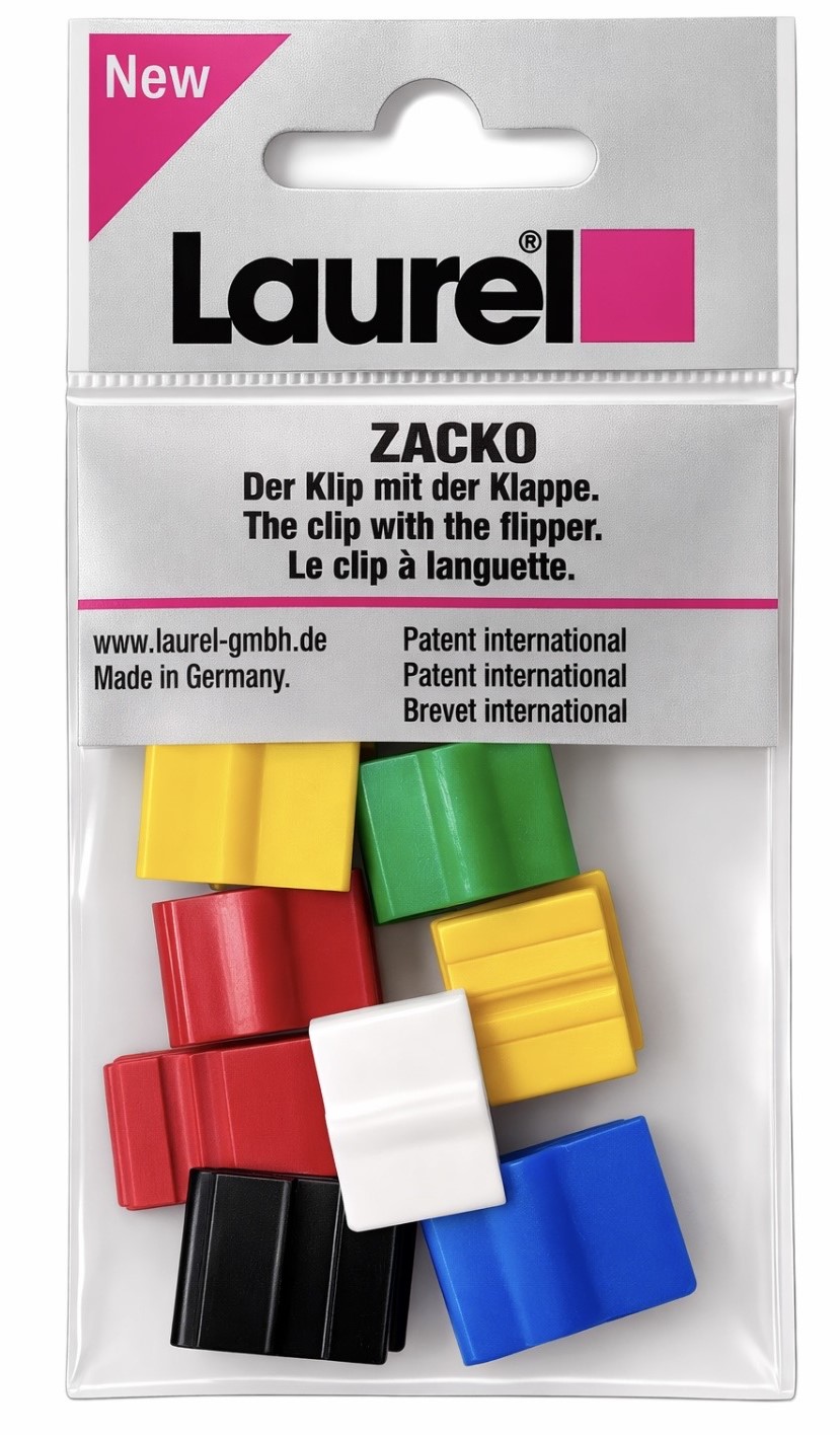 Ordnen, sortieren, aufbewahren – mit einem kleinen Helfer kann die Arbeit richtig Spaß machen. Der Laurel Zacko Klapphefter hält Papiere und Pappe fest und dauerhaft zusammen, lässt sich aber auch schnell wieder lösen. Nichts geht verloren oder wird beschädigt. Die Anwendung vom Zacko ist sehr einfach: Zacko auf die Papiere stecken, fertig. Bei dickeren Unterlagen die gerillte Klappe leicht anheben, Dokumente festhalten und Zacko aufstecken. Zum Lösen Klappe leicht anheben und Zacko abziehen. Ihre Unterlagen sind nun elegant und sicher geheftet. In 6 verschiedenen Farben erhältlich sorgt die Brief- und Eckenklammer für farbliche Akzente im Büroalltag. Produktdetails: 100% „Made in Germany“, aus POM. Breite: 15 mm, Höhe: 22 mm, Fassungsvermögen: 2-30 Blatt.