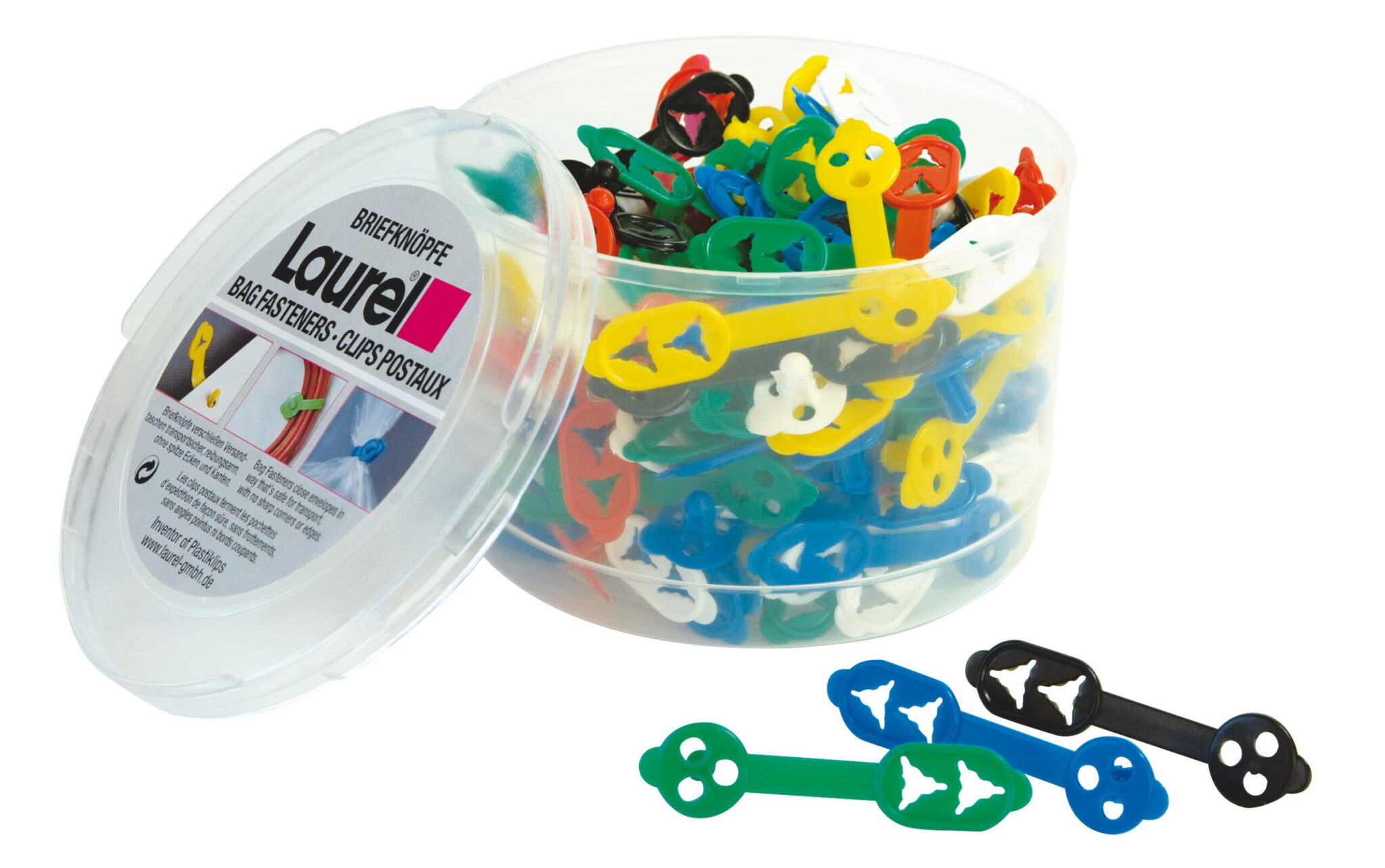 Die Laurel Briefknöpfe sind universell einsetzbar als kleine nützliche Helfer in Büro, Haushalt, Garten oder Werkstatt. Sie bündeln und heften Schriftstücke und Broschüren. Die Laurel Briefknöpfe eignen sich perfekt als postgenehmigter, transportsicherer Verschluss von Musterbeuteln oder Versandtaschen. Luftpolsterumschläge können mit ihnen einfach und originell zugehalten werden. Auch in der Küche machen die Briefknöpfe eine gute Figur und verschließen Gefrierbeutel sicher und zuverlässig und sind immer wieder zu verwenden. Die abgerundeten Ecken und Kanten des Briefknopfes gewährleistet, dass es zu keinerlei Beschädigungen kommt. Das zähe und flexible Material hält fest und dauerhaft. Produktdetails: 100% „Made in Germany“, aus sortenreinem Polyethylen (PE). Größe: 30/38 x 8 mm (L x H). Die Laurel Briefknöpfe – verschließen Gefrierbeutel sicher und zuverlässig. – sind nützliche Helfer in Werkstatt, Garten, Haushalt oder Büro. – binden gelochte Papierstapel schnell und mühelos. – sind ideal zum Verschließen von Versandtaschen.