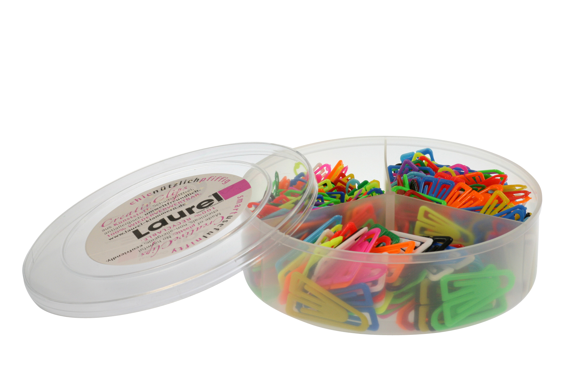 Fröhlich-bunte Büroklammern in Dreiecksform für Schule, Büro und mehr. Die farbenfrohen Laurel Plastiklips bringen Farbe in den Büroalltag und Ihre Korrespondenz. Im Büroalltag müssen sehr häufig Schriftdokumente thematisch zueinander geordnet werden. Das Zusammenstellen von Papierdokumenten in Heftern oder Ordnern „versteckt“ Ihr Schriftgut und wer Unterlagen mit dem Tacker aneinander heftet, beschädigt dabei das Papier. Laurel Plastiklips sind die ideale Lösung, wenn eine Zuordnung von kurzer Dauer sein soll. So können Sie Schriftstücke gruppieren und sie zusammenhängend leicht wiederfinden. In vielen kräftigen Farben erhältlich dienen die Laurel Plastiklips ebenfalls hervorragend als Kartenreiter oder zum Markieren von wichtigen Hinweisen. Unsere Laurel Plastiklips sind aus Polystyrol (PS) und daher formbeständig. Die Briefklammern werden durch die Nutzung nicht verbogen und können somit immer wieder gleichbleibend formschön genutzt werden. Durch ihre guten Materialeigenschaften sind die Laurel Plastiklips stark belastbar und extrem flexibel. Die Laurel Plastiklips® – sorgen für einen direkten Zugriff in umfangreichen Aktenablagen. – dienen hervorragend als Kartenreiter. – eignen sich als Lesezeichen in Büchern und Zeitschriften. – sind nützlich zum Markieren von wichtigen Hinweisen oder Terminen am Wandkalender.