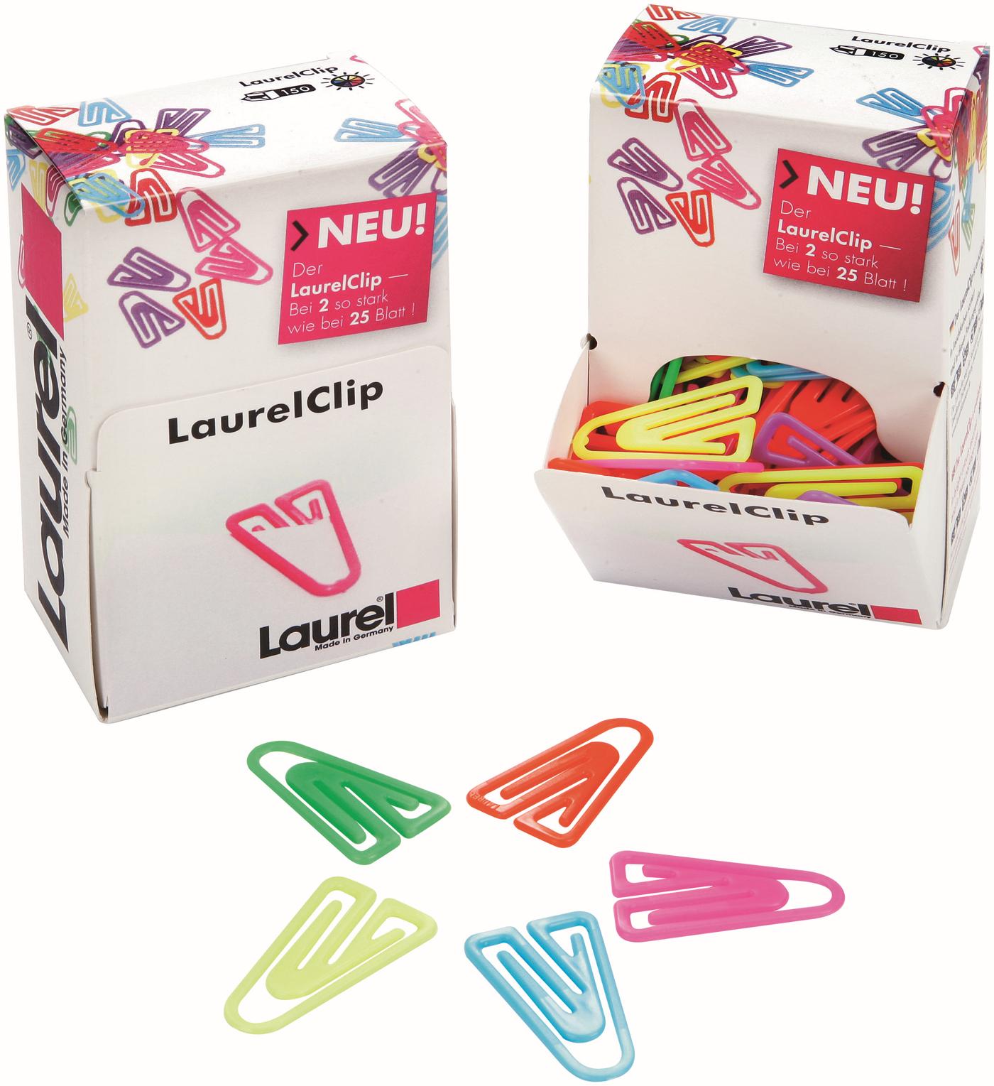 Der leuchtend-bunte LaurelClip steht für Freude im Büroalltag und Liebe zum Detail. Der hübsche LaurelClip motiviert bei der Büroarbeit und das oftmals unbeliebte Ordnen von Dokumenten fällt sofort leichter. Der LaurelClip ist die erste asymmetrische Büroklammer, die durch ihre Form zwei Blatt Papier genauso stark hält wie 25 Blatt. Unterschiedlich lange Klemmschenkel machen es möglich. Der lange Klemmschenkel ist für den dicken Papierstapel optimal, der kurze für den dünnen Papierstapel. Mit dem LaurelClip werden Ihre Schriftstücke fest miteinander verbunden, ohne dass das Papier beschädigt wird oder ausreißen kann. Durch unseren in Leuchtfarben getauchten LaurelClip erhalten die geordneten Papiere einen fröhlich bunten Farbtupfer. Produktdetails: 100% „Made in Germany“, Material Polystyrol, in 6 leuchtenden Farben verfügbar. Größe: 30 mm. Der LaurelClip – sorgt für einen direkten Zugriff in umfangreichen Aktenablagen. – dient hervorragend als Kartenreiter. – eignet sich als Lesezeichen in Büchern und Zeitschriften. – ist nützlich zum Markieren von wichtigen Hinweisen oder Terminen am Wandkalender.