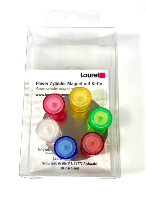 Klein – stark – bunt, das sind die Laurel Power Magnete. Der Laurel Power Zylinder Magnet punktet mit frischem Design in 12 ansprechenden Kristall- und Leuchtfarben. Er ist perfekt geeignet, um Karten, Hinweise oder Aushänge an Aktenschränke, Magnetwände oder den Kühlschrank zu befestigen. Die tollen Farben setzen dabei gekonnt farbige Akzente. Produktdetails: 100% „Made in Germany“, Größe: 14 x 19 mm, Haftkraft: 1.900 g.