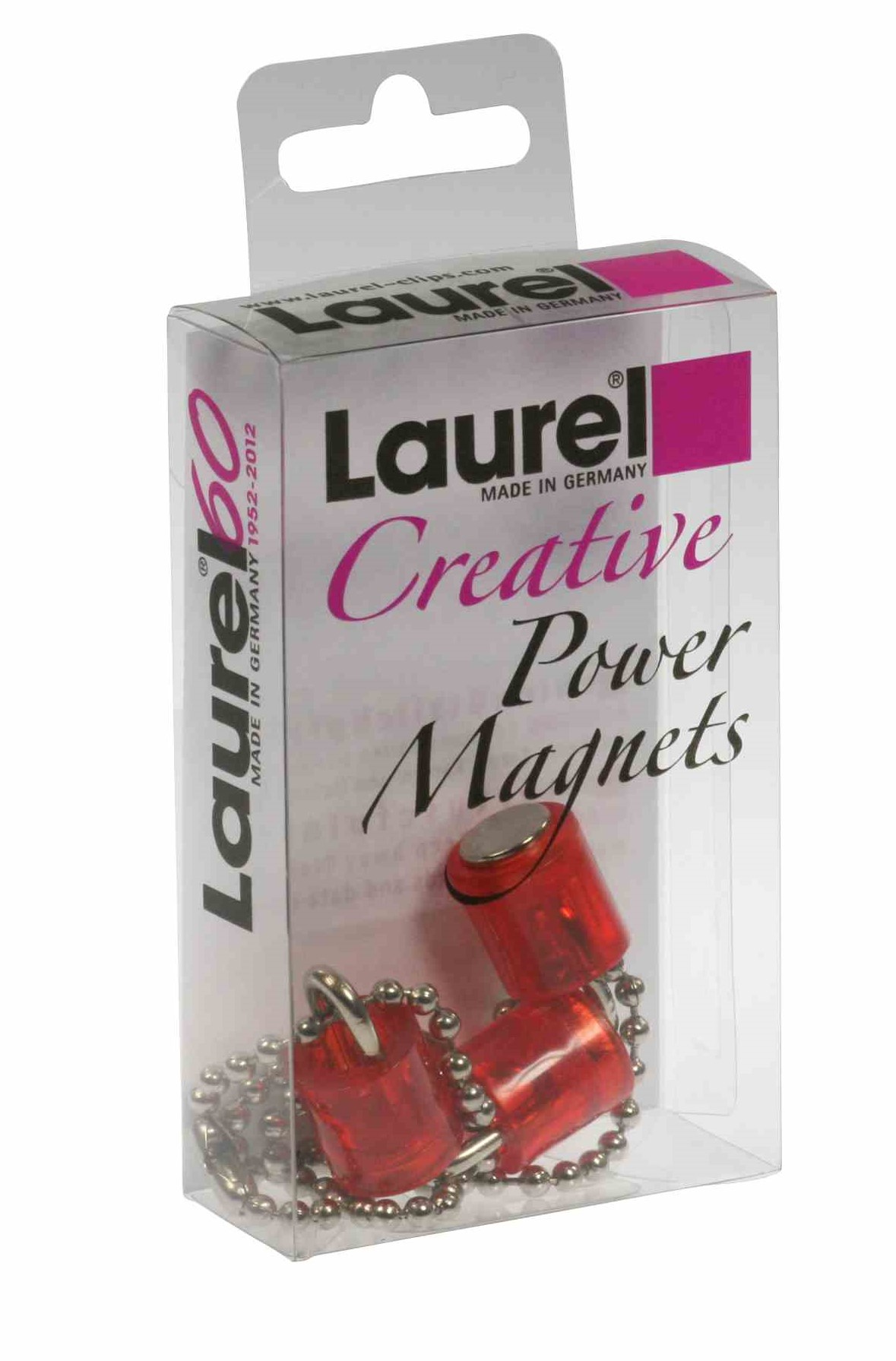 Klein – stark – bunt, das sind die Laurel Power Magnete. Der Laurel Power Zylinder Magnet mit Kette punktet mit frischem Design in 6 ansprechenden Kristallfarben. Er ist perfekt geeignet um Karten, Hinweise oder Aushänge an Aktenschränke, Magnetwände oder den Kühlschrank zu befestigen. Mit der kleinen Kette lassen sich Stifte, Scheren oder Schlüssel an metallischen Oberflächen befestigen. Die Kristallfarben setzen dabei gekonnt farbige Akzente. Produktdetails: 100% „Made in Germany“, Größe: 14 x 25 mmHaftkraft: 1.900 g.