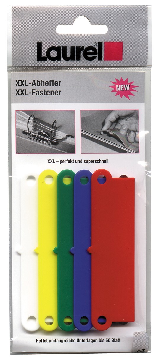 Die modernen Laurel Abhefter XXL sind angenehm glatt und flexibel und sehr einfach in der Handhabung. Einfach die spitzen Enden in die Papierlochung stecken und umknicken, fertig! Sie sind geeignet für Schriftgut bis zu 50 Blatt. Die Laurel Abhefter XXL sind die idealen Ablagehelfer im Büro. Passend zu Ihren farblichen Ordnungskriterien gibt es die Laurel Abhefter in 6 verschiedenen Farben. Produktdetails: 100% „Made in Germany“, aus sortenreinem Polyprophylen (PP). Größe: 28 x 115 mm, 8 cm Lochung, Füllvermögen: 5 mm. Die Laurel Abhefter sind die modernen Ablagehelfer im Büro. Werden schnell angebracht und sind zur Ablage im Ordner vorbereitet.